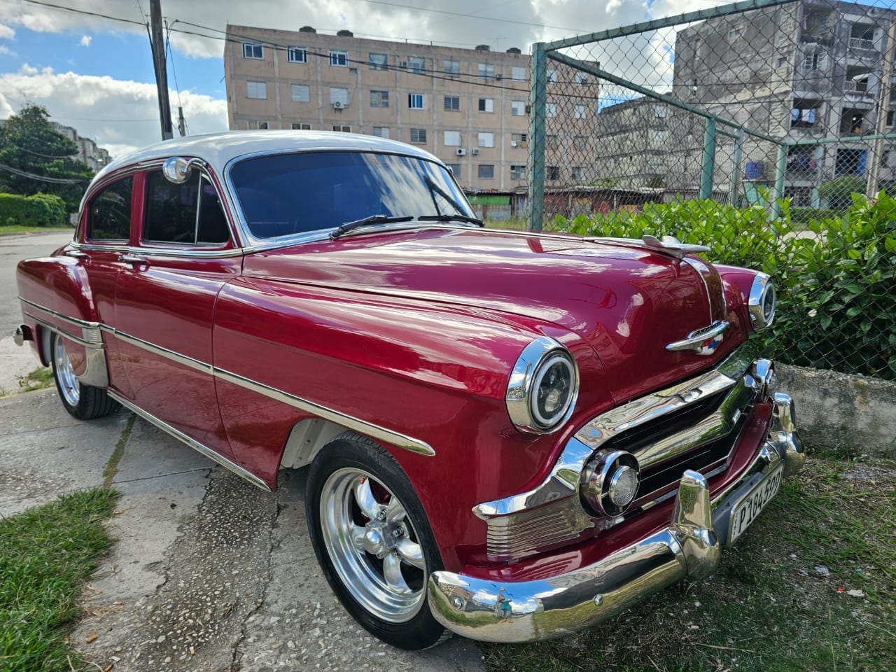Con llantas American Racing de 17″ y neumáticos marca Kumho, este Chevy 1953 ofrece un agarre excepcional en cualquier camino. Su interior es una obra de arte, con un salón completamente nuevo y personalizado con materiales importados de EE. UU., creando un ambiente exclusivo que no se encuentra en otro lugar de Cuba.