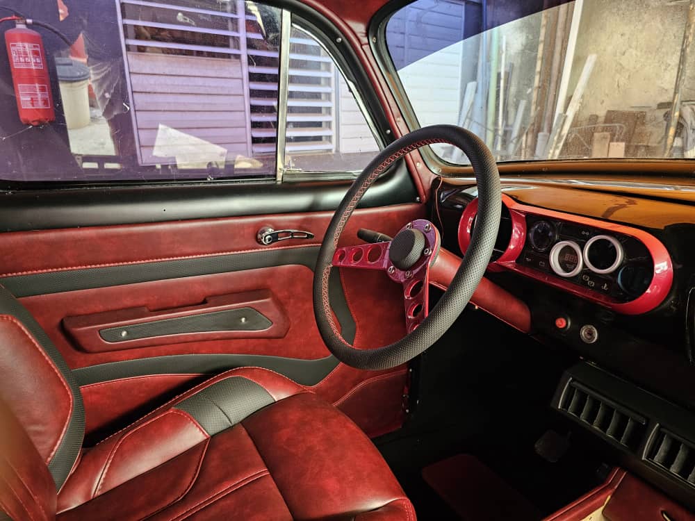 Con un tanque de combustible de 80 litros y un sistema de GPS que puede revisar desde su móvil, este Chevy 1953 está listo para recorrer largas distancias con confianza. Su pintura bi capa, realizada con materiales originales, brilla con un acabado impecable, mientras que su dirección asistida y frenos mejorados garantizan un control total en la carretera.